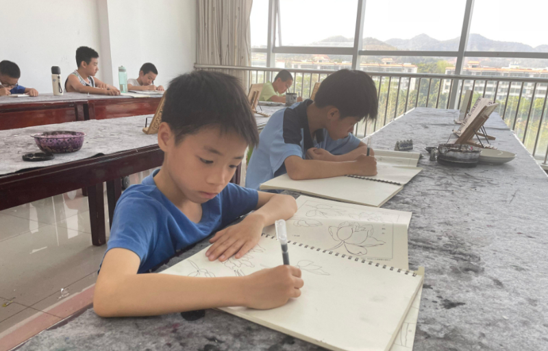 当少年们在美术教室用画笔勾勒成长轨迹时,对面书法教室的学员,也在笔尖下记录着自己的点滴进步。