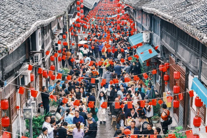 古镇文化在烟火气中焕发生机,每年的“千人坝坝宴”系列活动更是在雒水驿站缤纷演绎,从“赵婆相亲会”到“宋朝私塾”,不仅让游客欢乐,更使古镇居民受益。全年五十余场文化活动吸引上万人参与,村民在家门口享受文化盛宴。